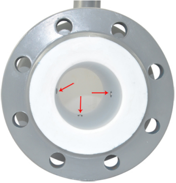 电磁流量计测量原理主要是根据法拉第电磁感应原理,导电介质切割磁感线产生感应电动势,通过管道中心轴线安装的两个测量电极来采集信号。如果不能保证满管,电磁流量计将采集不到任何信号,另外测量的数值也不准确