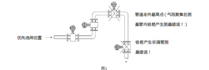 为了使流量计工作可靠稳定,在选择管道安装位置时应注意以下几点要求;